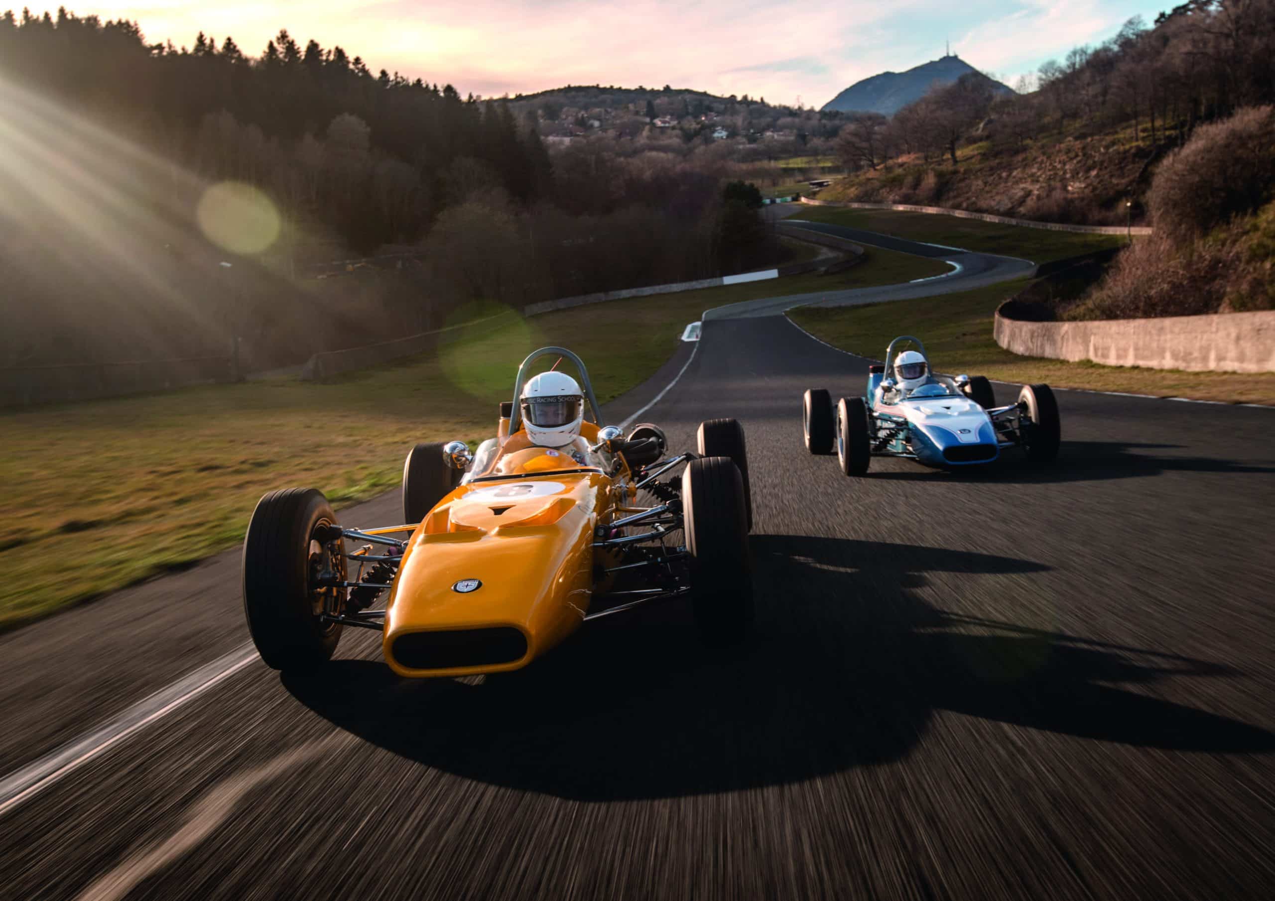Immerse yourself in a truly retro atmosphere behind the wheel of vintage vehicles delivering pure sensations. Discover our entire fleet of Classic Racing School single-seaters.